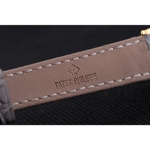 | Bracelet | Bracelet en cuir de crocodile gris estampé à chaud avec logo Patek Philippe et fermoir à boucle à crochet plaqué or jaune 18 carats |