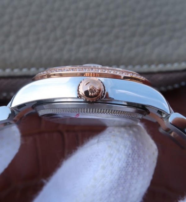 Replique Rolex DateJust 31 mm Lunette/index diamants Boîtier RG Cadran or RG A2235